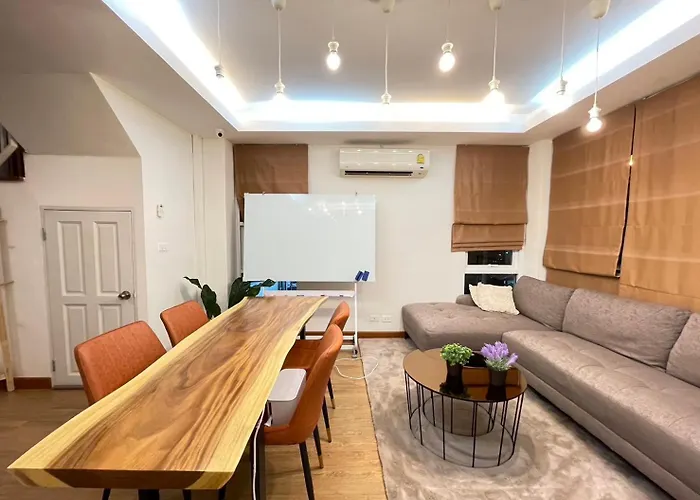 La propriété Modern 5-Bedroom Townhome Near Mrt And Local Charm propose des équipements indépendants, tels qu'une cuisine complète et un coin repas pour le confort des clients. L'aéroport international de Don Mueang est à 20 km de Modern 5-Bedroom Townhome Near Mrt And Local Charm, tandis que la station de métro Lat Phrao est dans une zone de 800 mètres.